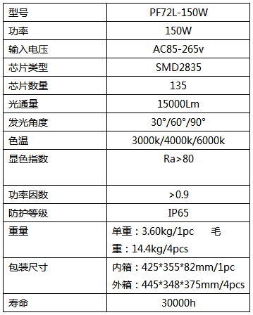 泛光燈技術(shù)參數(shù)
