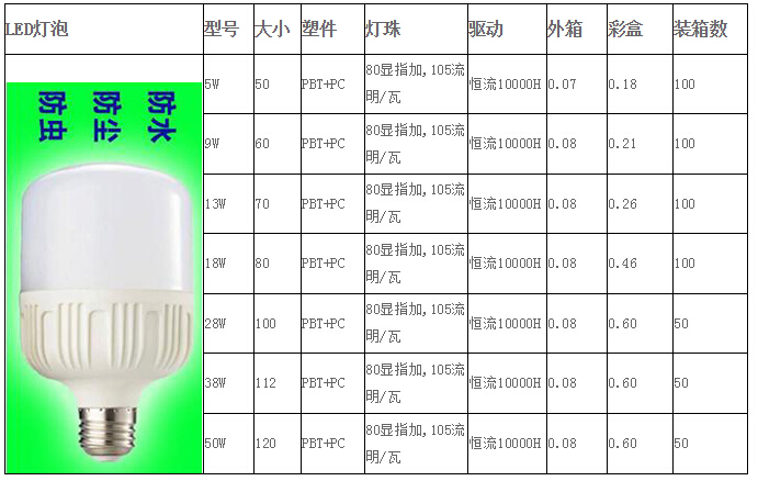 LED燈泡產品參數