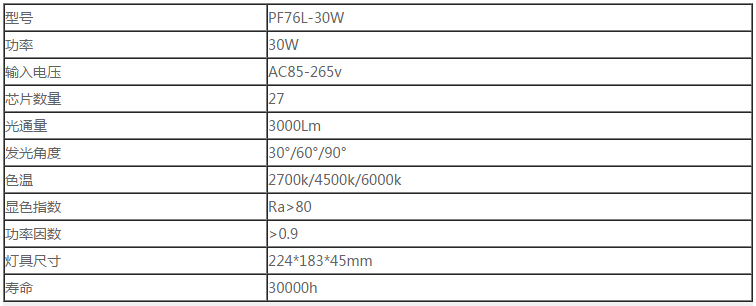 PF76L-30W產品參數: