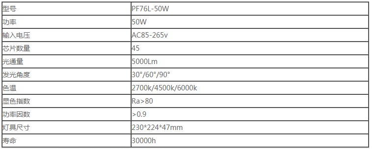PF76L-50W產品參數