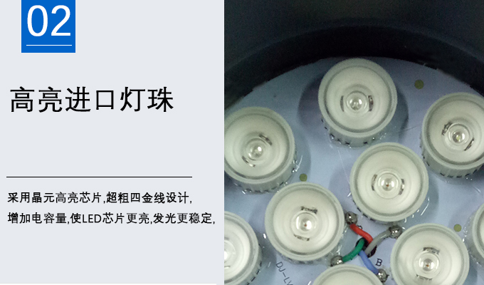 2、采用晶元高亮芯片,粗四金線設(shè)計,增加電容量,使LED芯片更亮,發(fā)光更穩(wěn)定